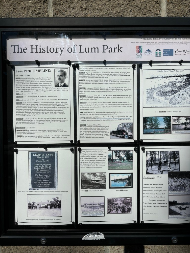 As we stopped for lunch and driver change on the edge of Brainerd, a sweet park named Lum, on the shores of Rice Lake.