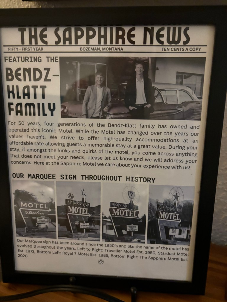 We arrived at our amazing Motel, Bozeman, Montana, The Sapphire, resplendent in its modern 50’s charm