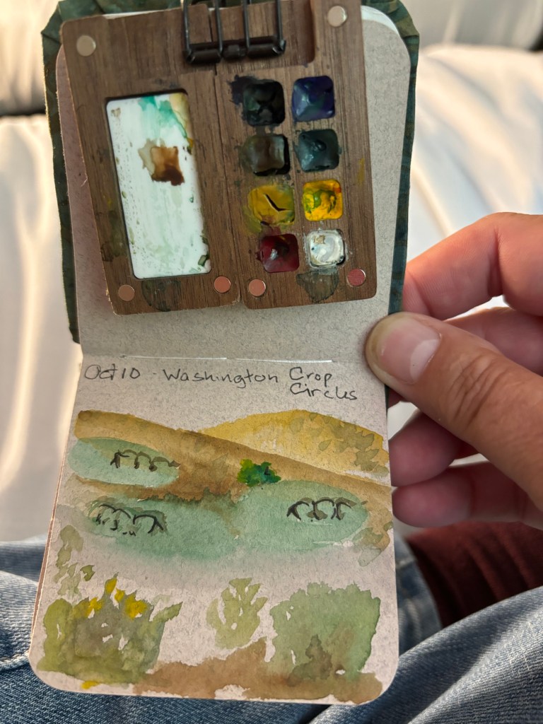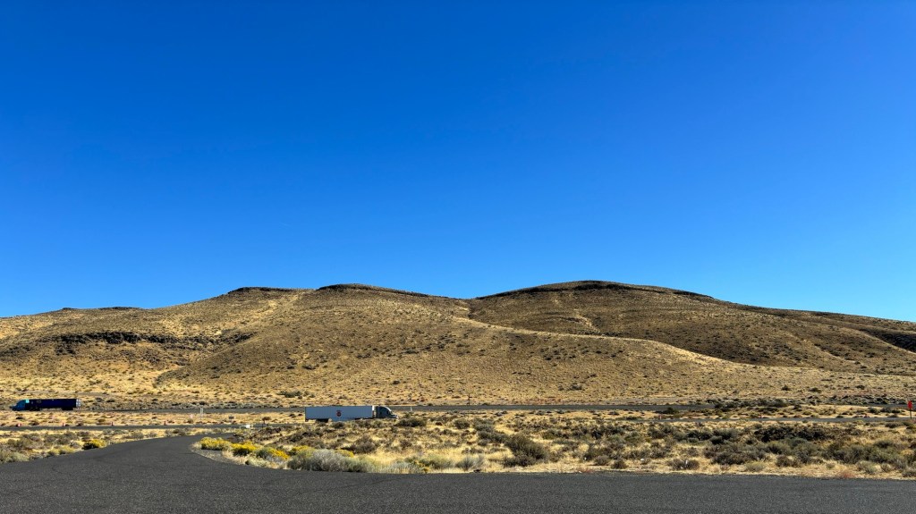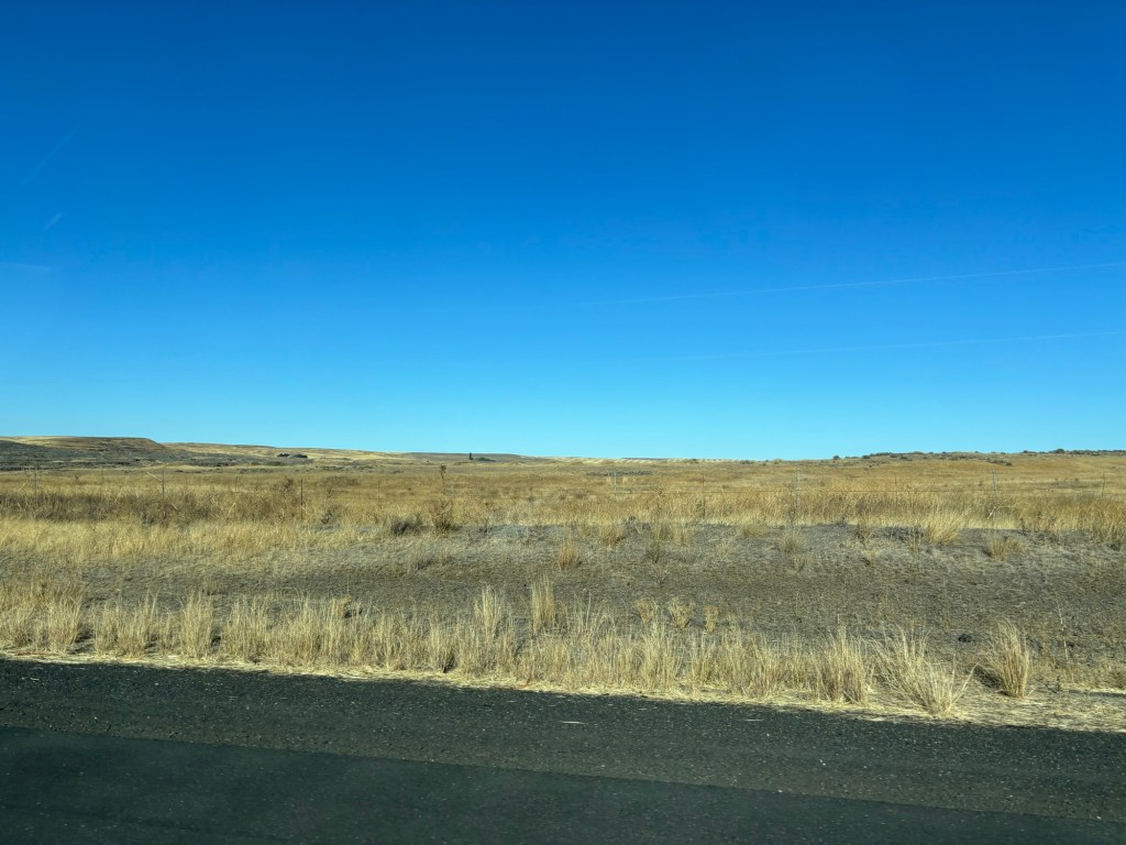 Off we headed again west. Suddenly we were in the Columbia Plateau. It was more prairie like than the prairies! Super flat, and filled with “crop circles” as the farmers used irrigation systems to water their fields.