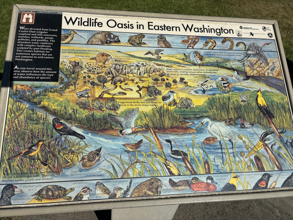 We left Spokane later than other days as we needed to take “fill time” before our next checkin. We had a leisurely breakfast, and met a Canadian couple who were driving to Ontario. They had started in the Kootenays, as their daughter just had a baby and they were heading home. We compared notes.