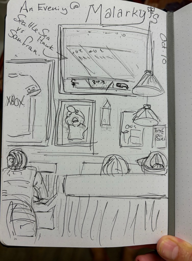The Seattle Sea Hawks were playing the San Fran 49ers. So it was an enthusiastic crowd in the place, and much cheering, that unfortunately turned to tears by the time we left!
