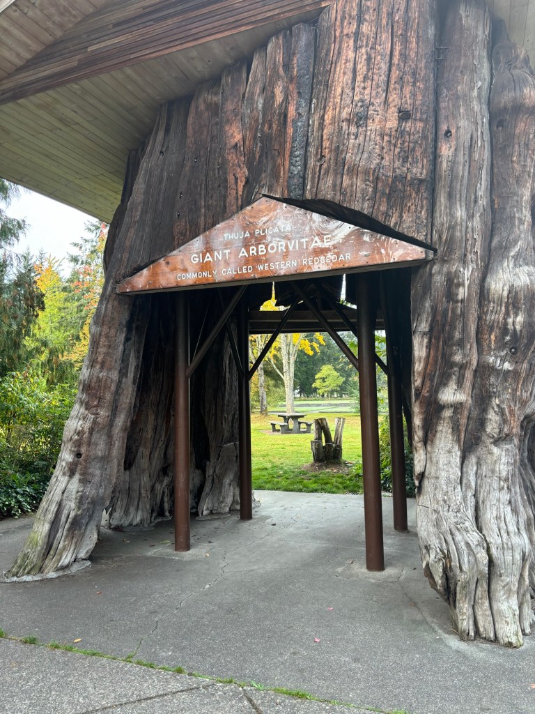 After we left the city, we and many others stopped for a quick break at the first rest stop. There was one of the Massive Redwood “drive through” stumps