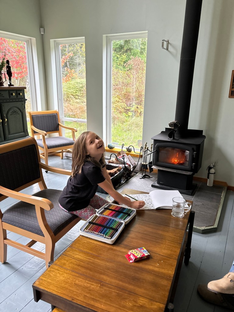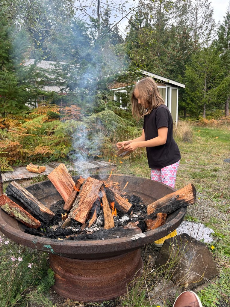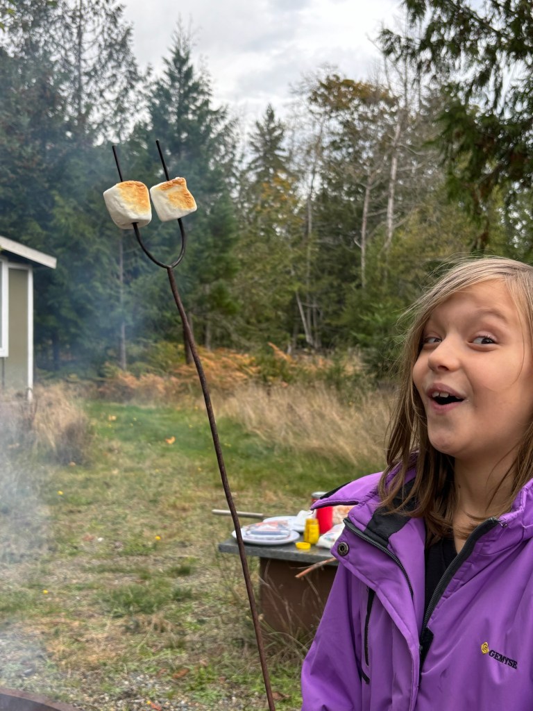 Back at our BnB and we started up the fire outside, so that we could roast Hotdogs and marshmallows…. Of course, after the marshmallows, Willow was over it, and headed inside, Grandma and Grandpa enjoyed the fall fire for a bit, until it began to rain 😢