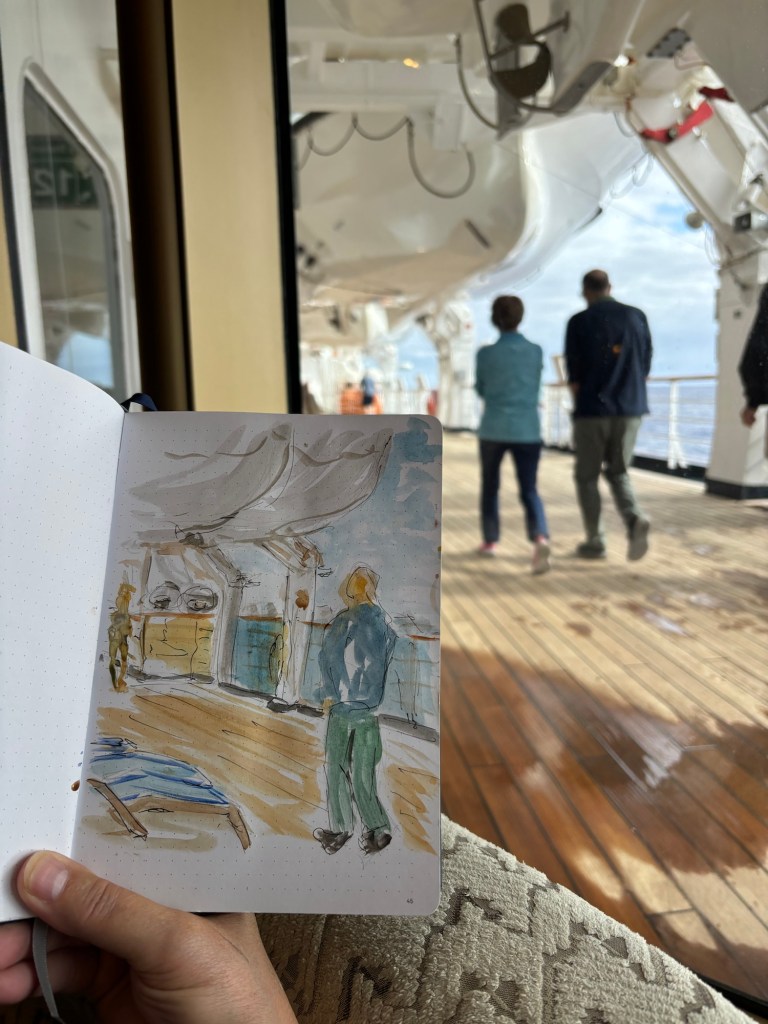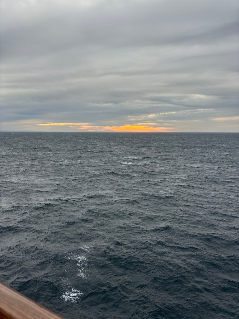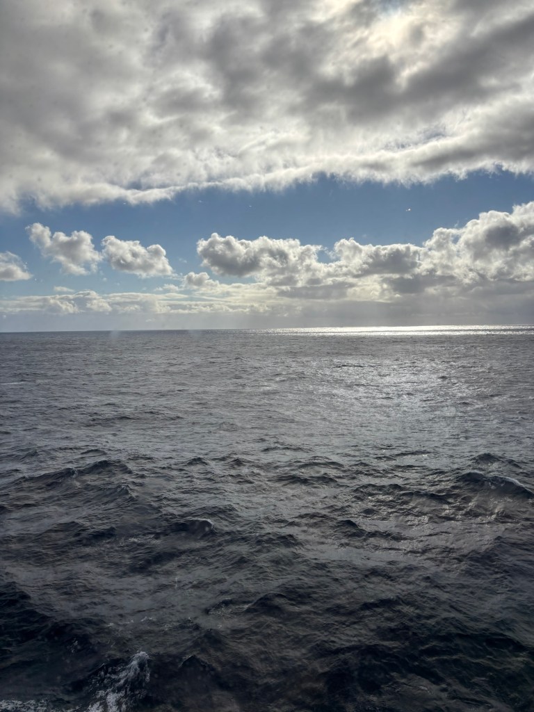 Finally after three days, the seas settled a bit… but according to the captain, a third storm was following the first two… but only swells of 10 feet! Seemed almost flat calm after the first few days.
