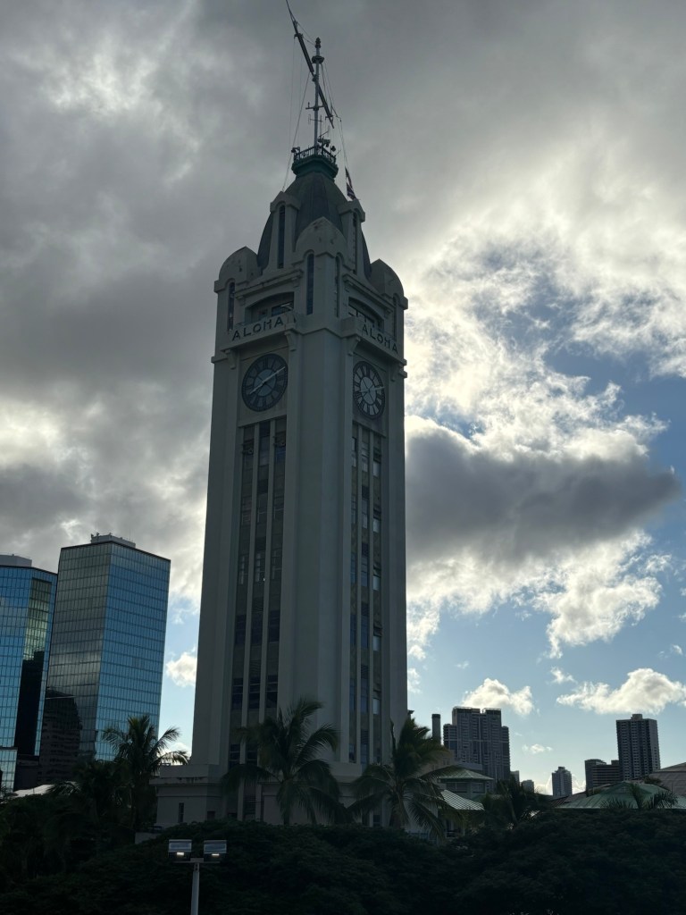 We were docked beside the iconic Aloha tower, which is good, because over the past 30 years, the downtown core has changed, with building rising from three- five stories to sky scrapers, making the tower hard to see from anywhere but Pier 11!
