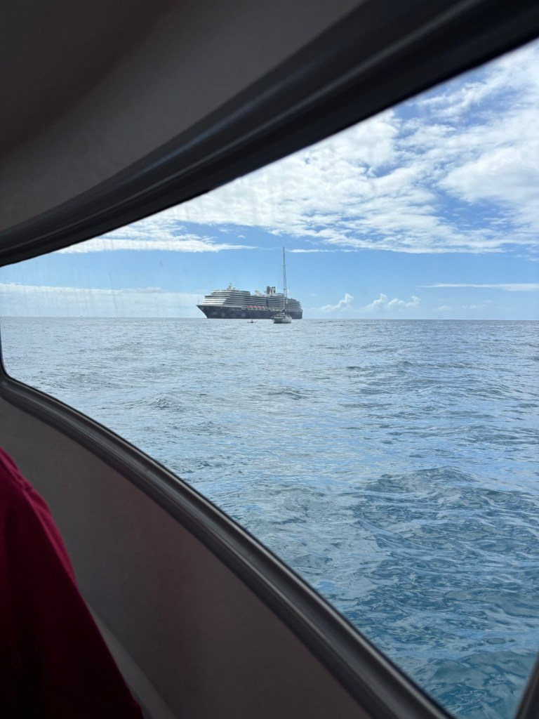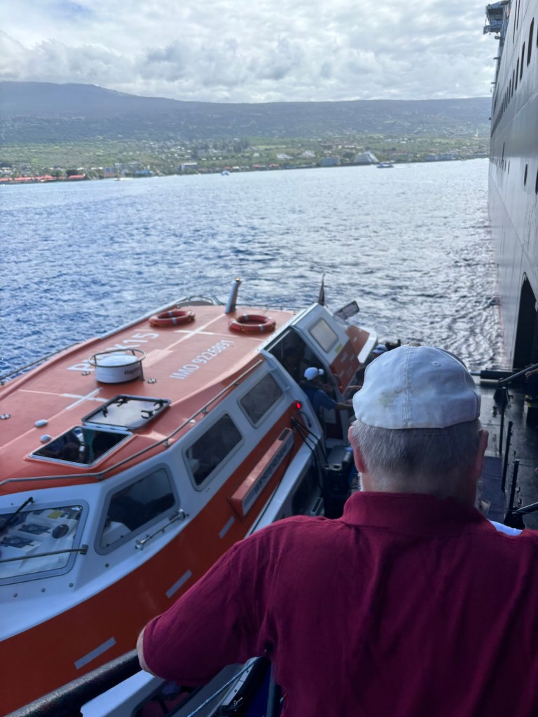 We were able to watch our approach into the small port of Kona. (But did not take pictures) and watched from our veranda was they began the Tender process.