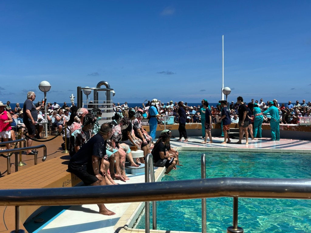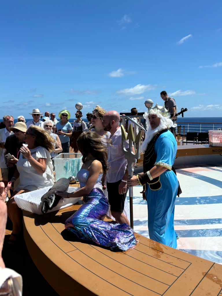 Then we cross the equator, and date time…. And it messes everything up. The carpets skip a day, we watch the tadpoles get slimed and the drinking schedule is disrupted!