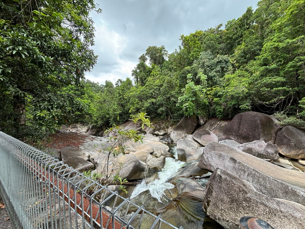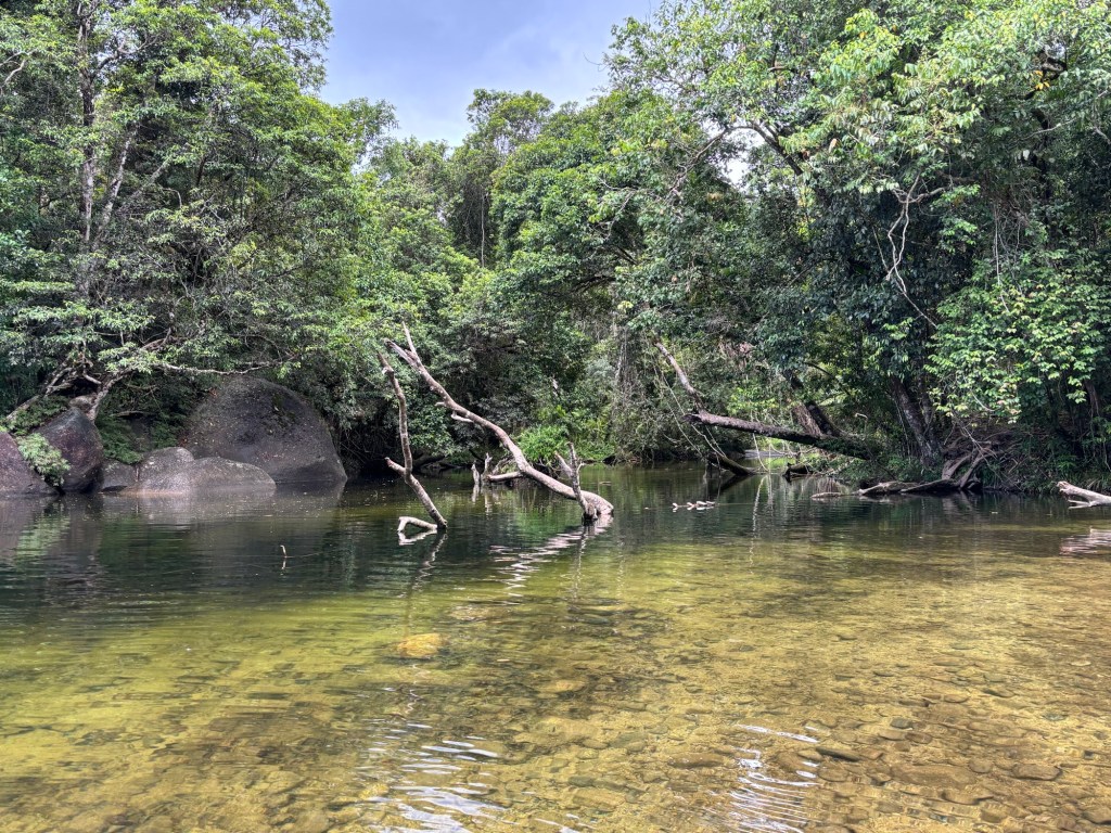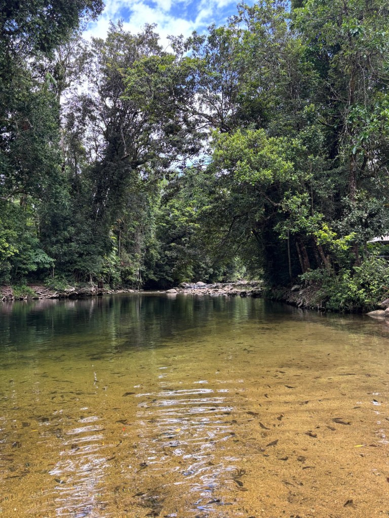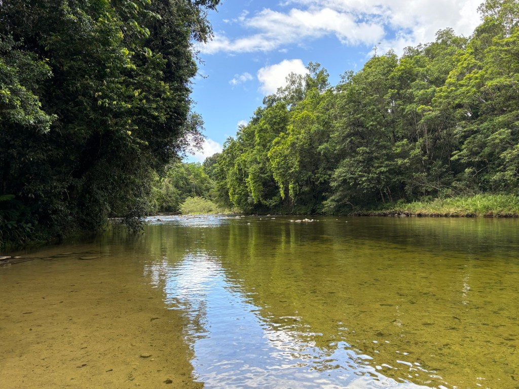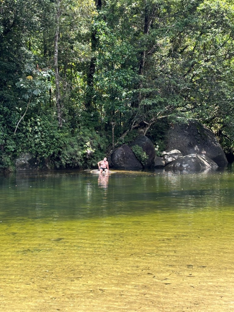 Rick teased about avoiding the crocs… then one of the locals said… “there are crocs, but further down stream, they don’t come up there” (we heard that twice today, second time at the campground, when the attendant recommended Alligator Pond) 😳