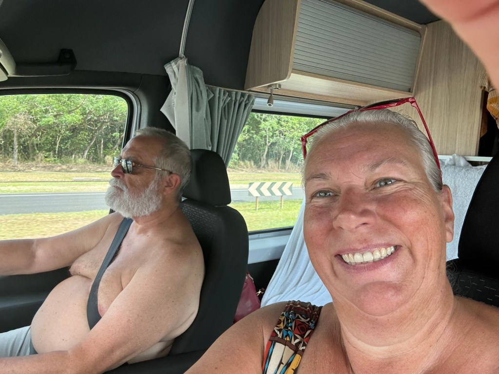We met a lovely German couple in the site beside us, who were just finishing up their three week drive from Sydney to Cairns… so we chatted until the sun went down, and the bugs came out. (And had some tasty adult beverages! lol )