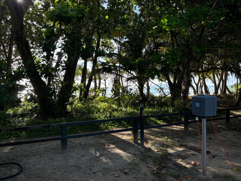 Our site was literally on the beach… (well some coconut trees between us and the water! Yeah! More palms!!
