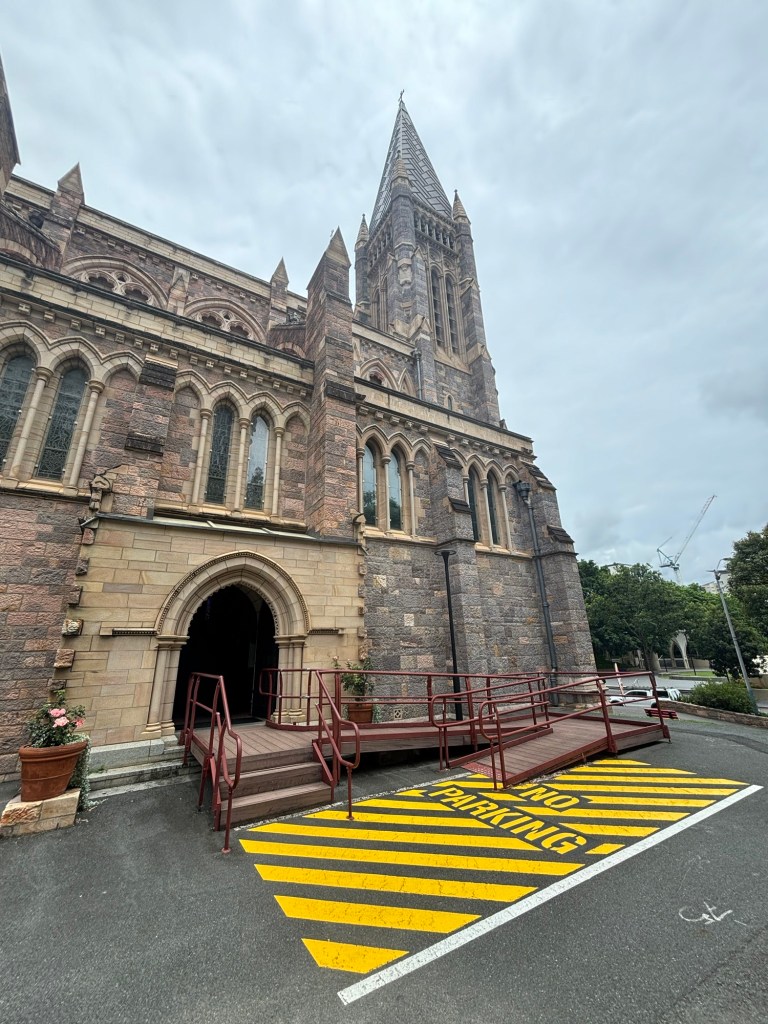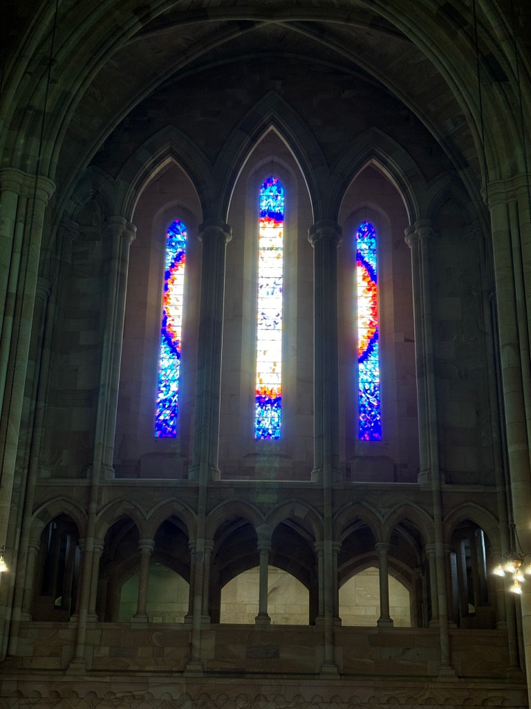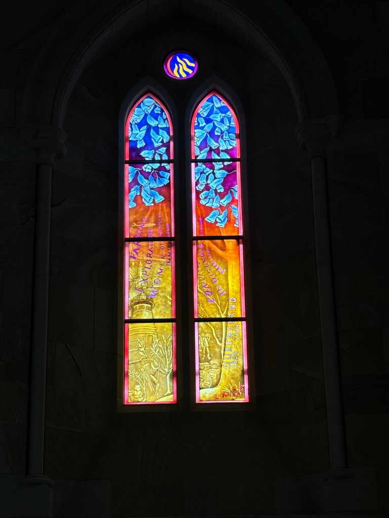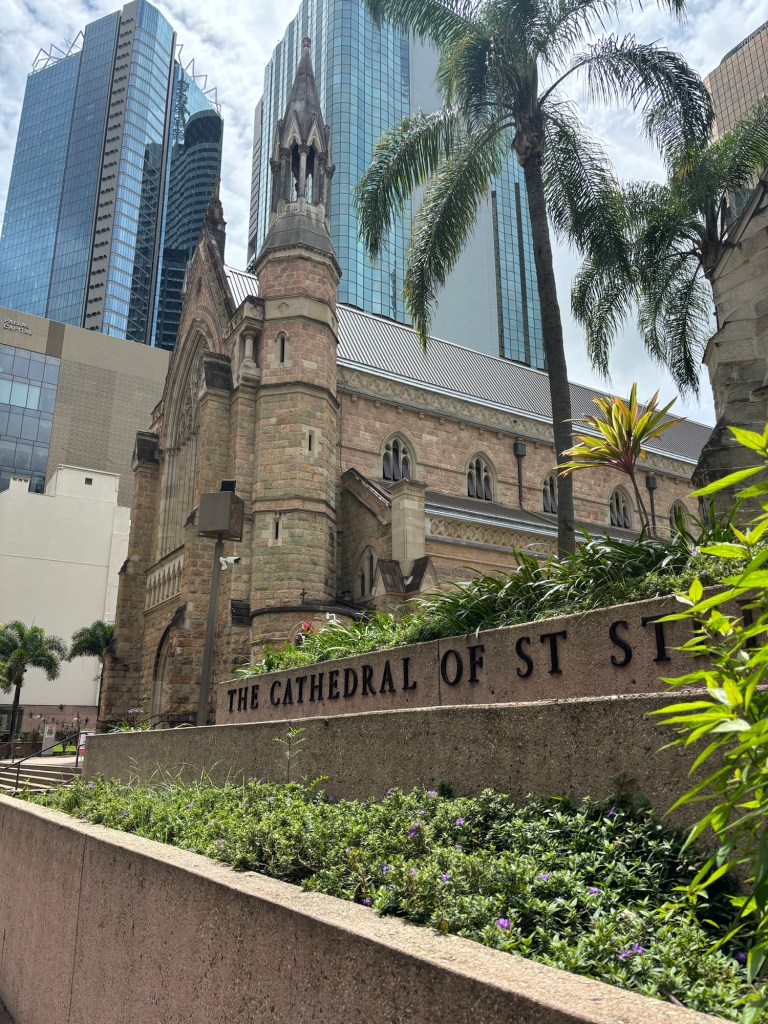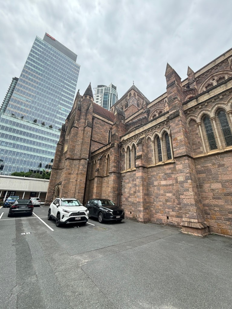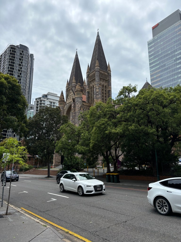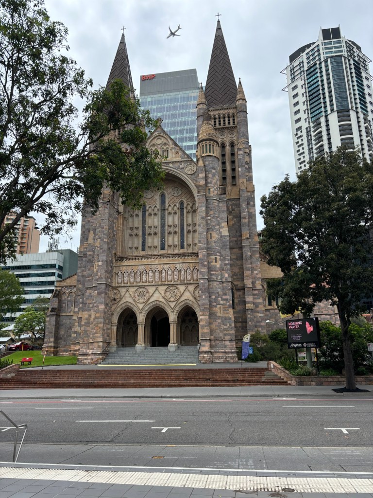 Brisbane, a city of a winding river, hot streets, lovely cool wharf, and a rather modern classic cathedral. They finished building it in 2009, 108 years after they started, in true cathedral style.