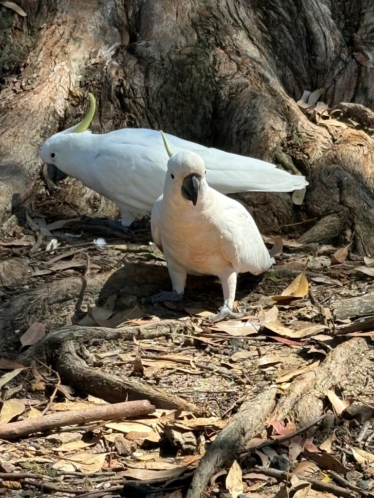 Our first stop was at Katoomba Falls. A tour was also there, and were feeding the Cockatoos. I walked down to falls (many stairs) and Rick enjoyed watching the birds