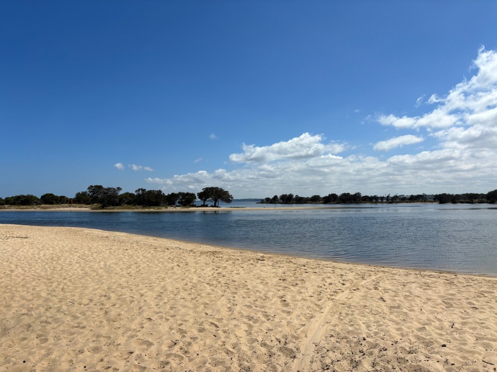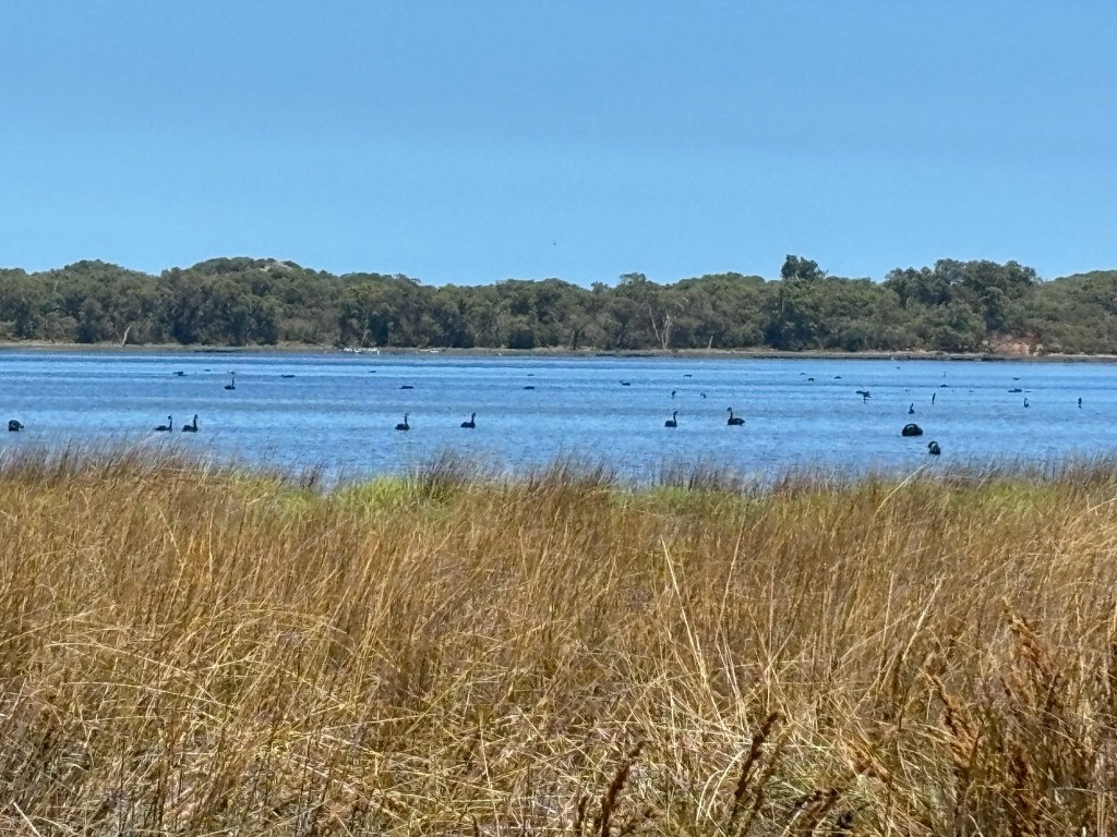 We drove along the shore, seeing the beaches and a flock of Swans