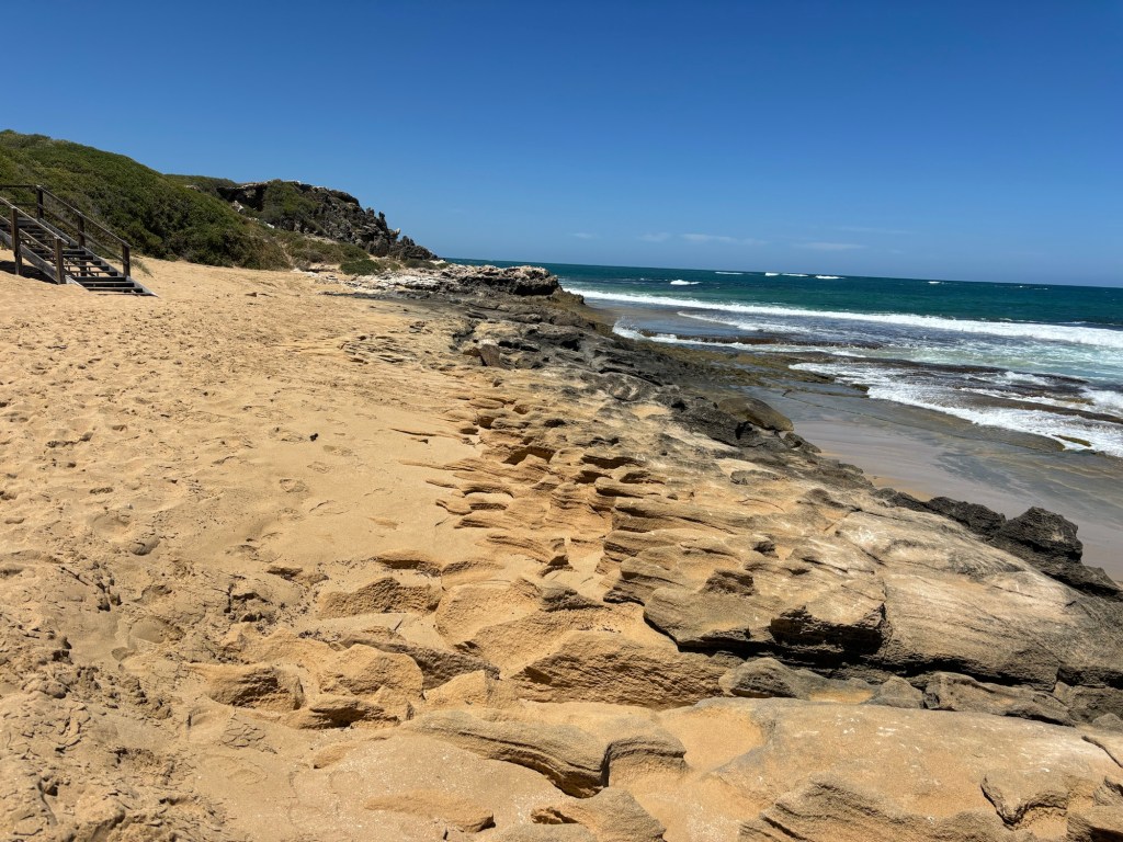 Unfortunately at the other end of the beach was a long set of stairs! Up we went.