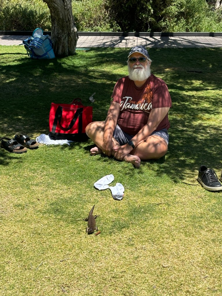 While I painted, Rick lay down in the shade to rest, but was awakened by something poking at his ear/beard…