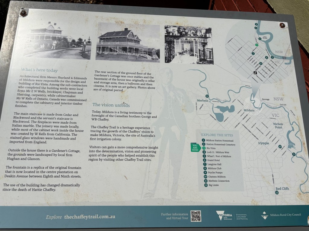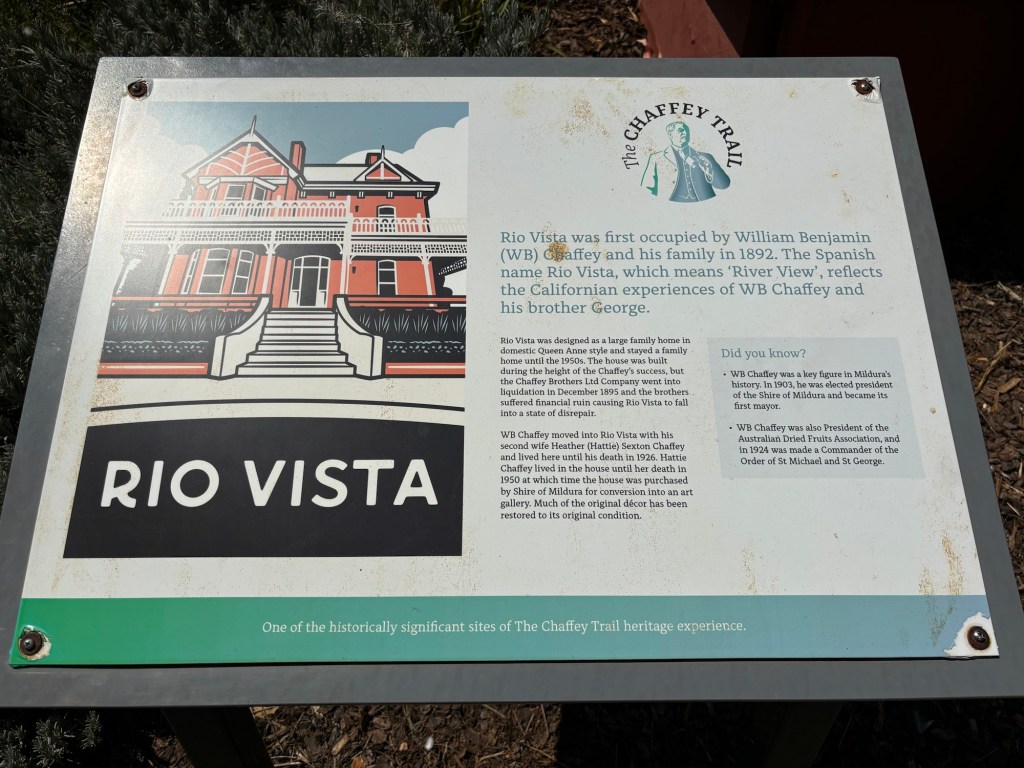 The house was an Interesting historical look at the area. The Chaffey Brothers… who originally came from Brockville Ont. And then moved to California, where they made a name for themselves as irrigation specialists. They then came here, they are known here as “the Americans”. But they were actually Canadians.