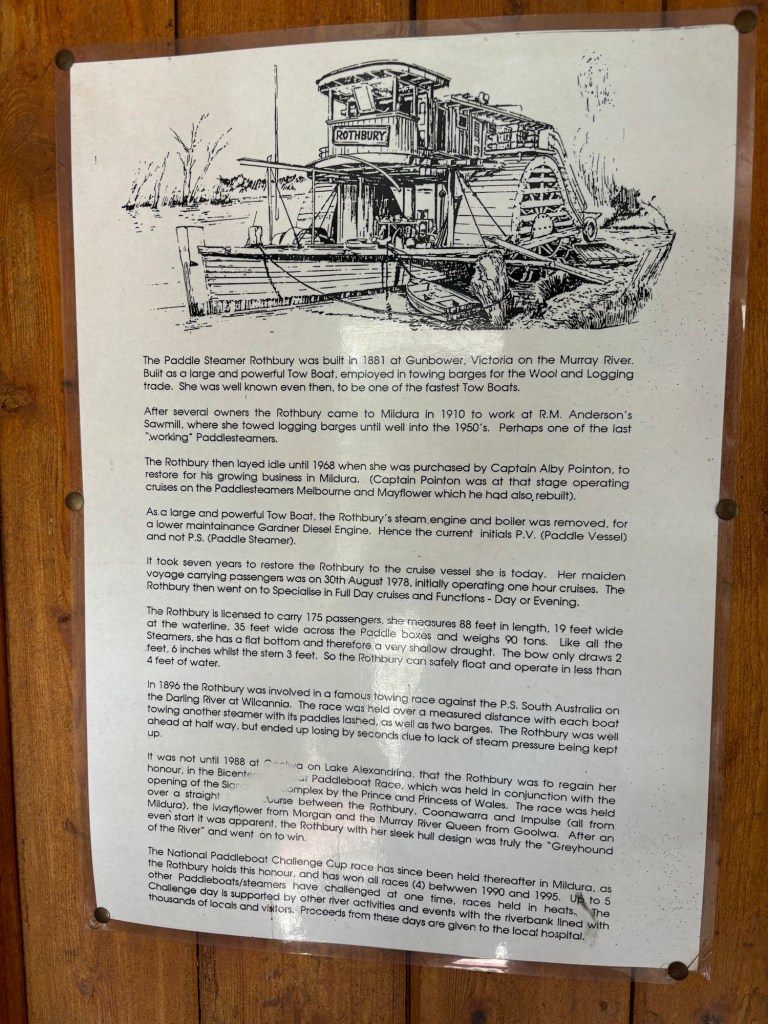 Today… we headed back to the river front for a paddle boat cruise along the Murray