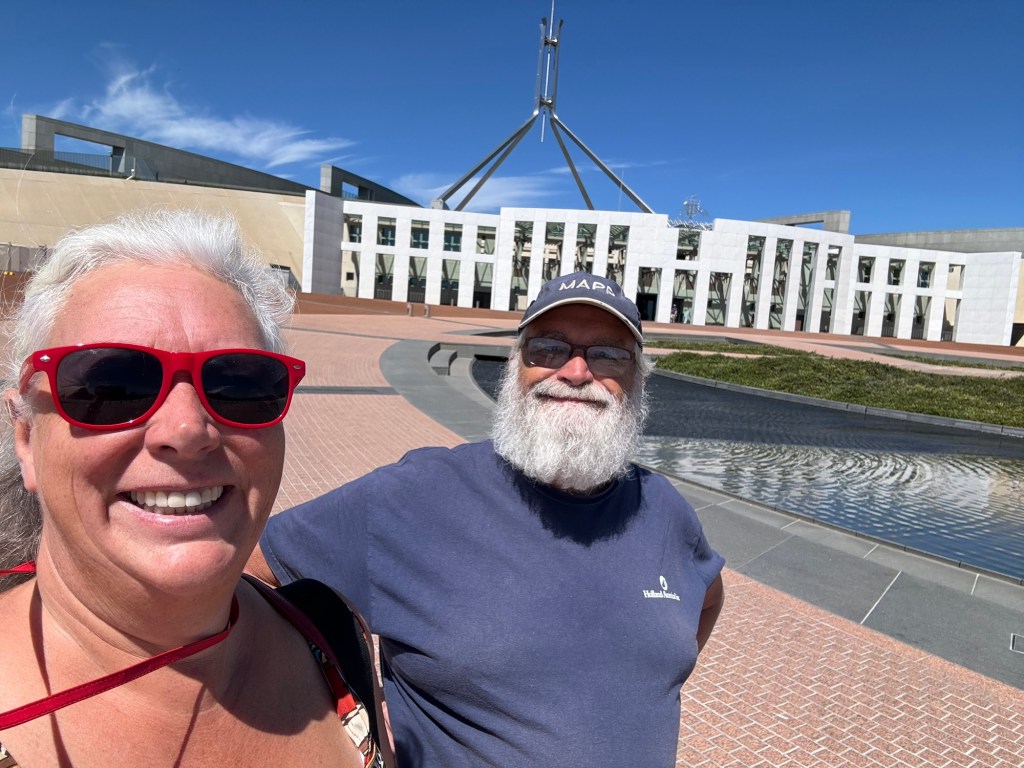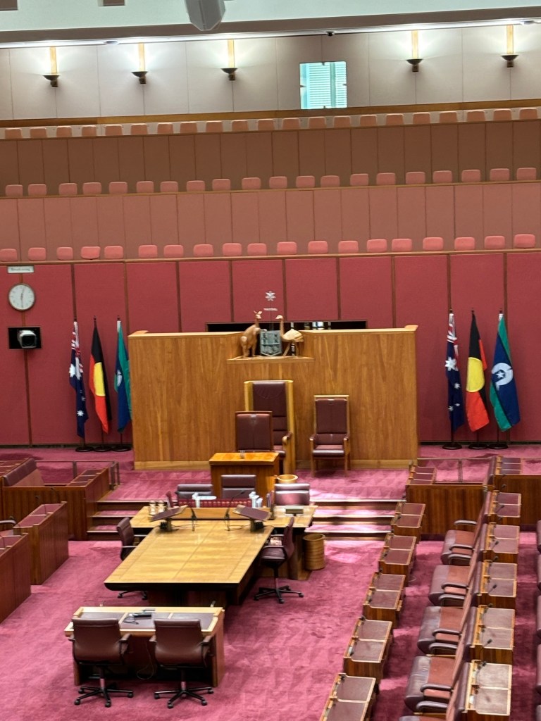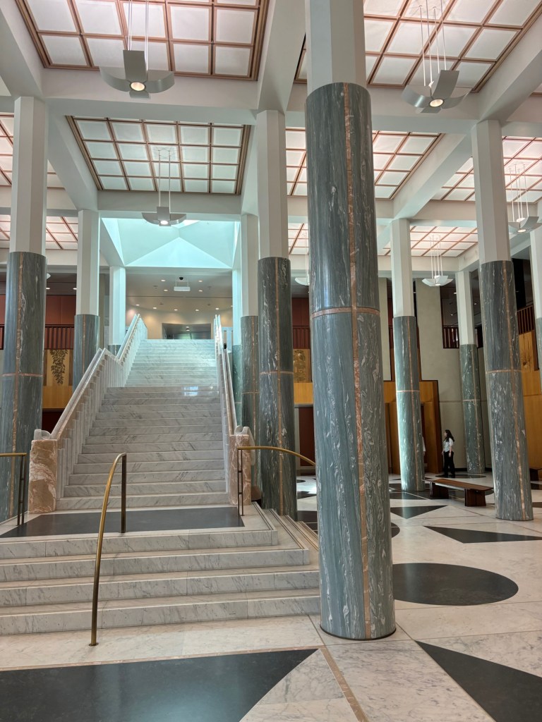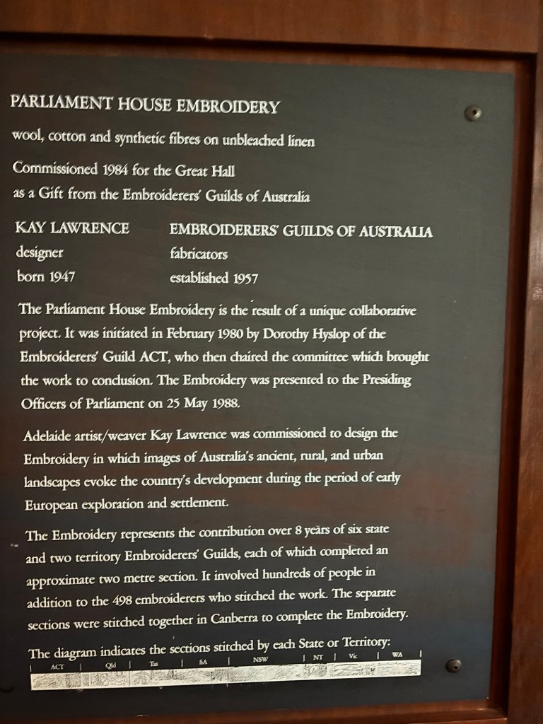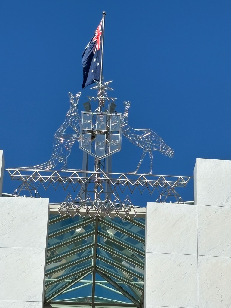 Today we went to visit the Australian Parliament Buildings. The government is not in session today, so we did get to see a lot, and the place was fairly quiet. They return tomorrow so there were a number of “minions” scurrying about getting ready.