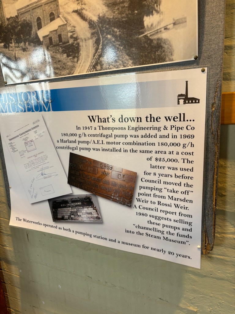 The fascinating thing, the water was pumped up the hill, to a settling pond, then through a sand filter, and then through gravity feed back to town, to the Belmore Park; where we were yesterday. To two taps, when the town folks would fill their buckets to get drinking water.