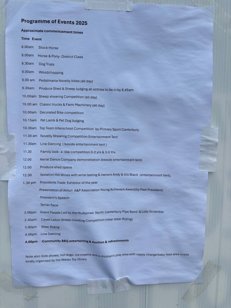 We spent the weekend in the area known as Amuri. It includes a number of villages, and hosted the A&P show (agriculture and pastoral)
