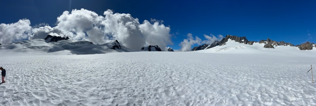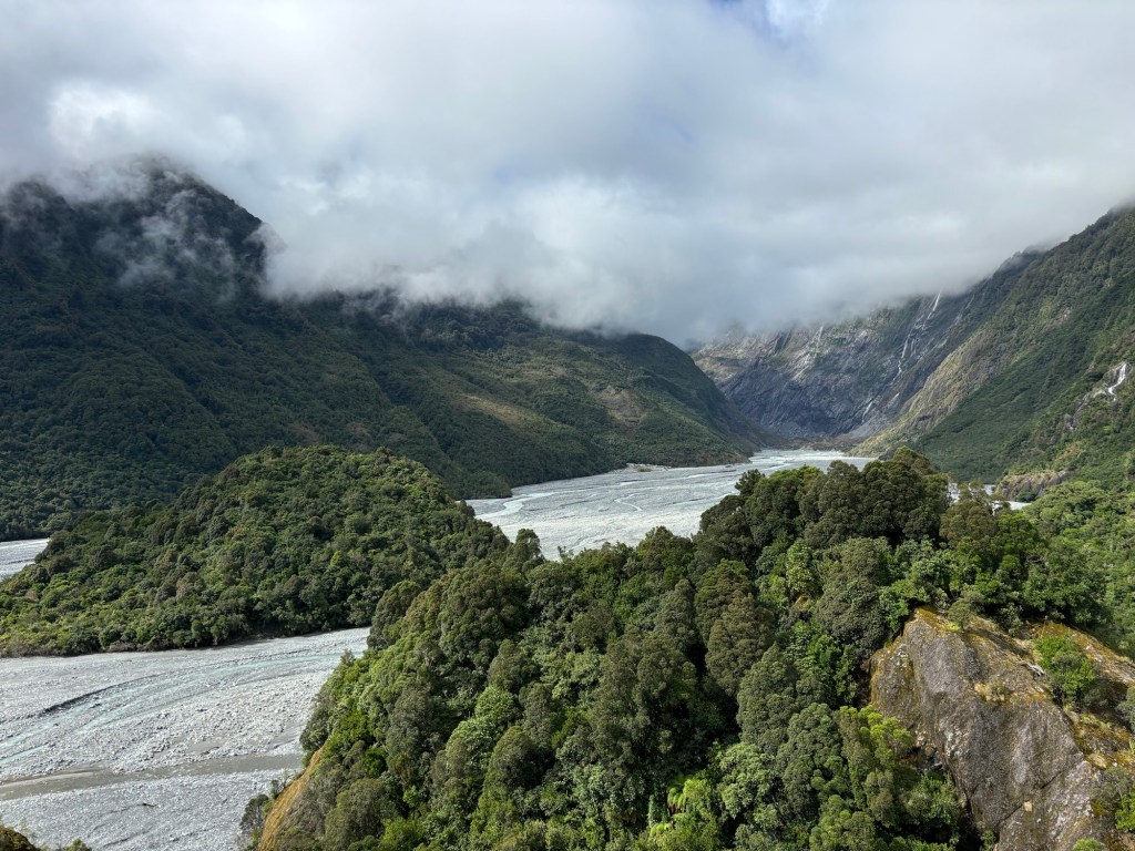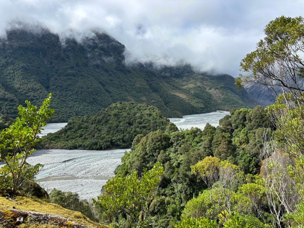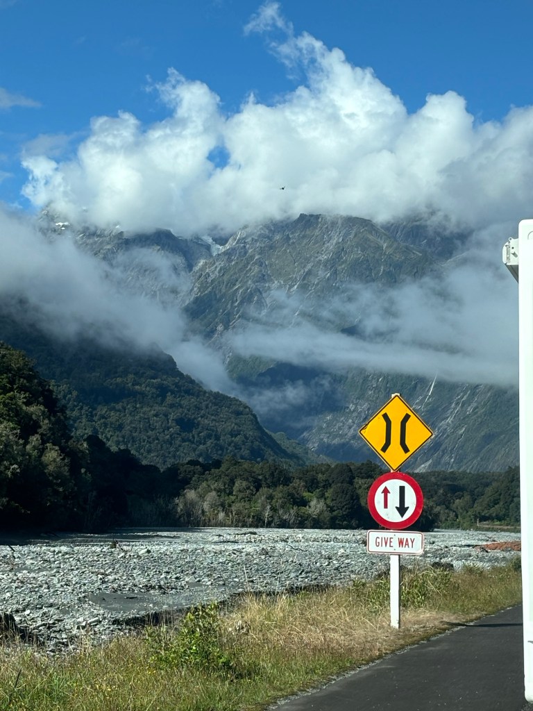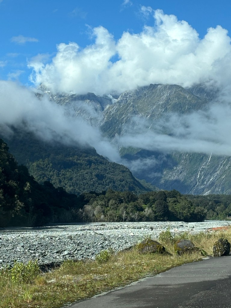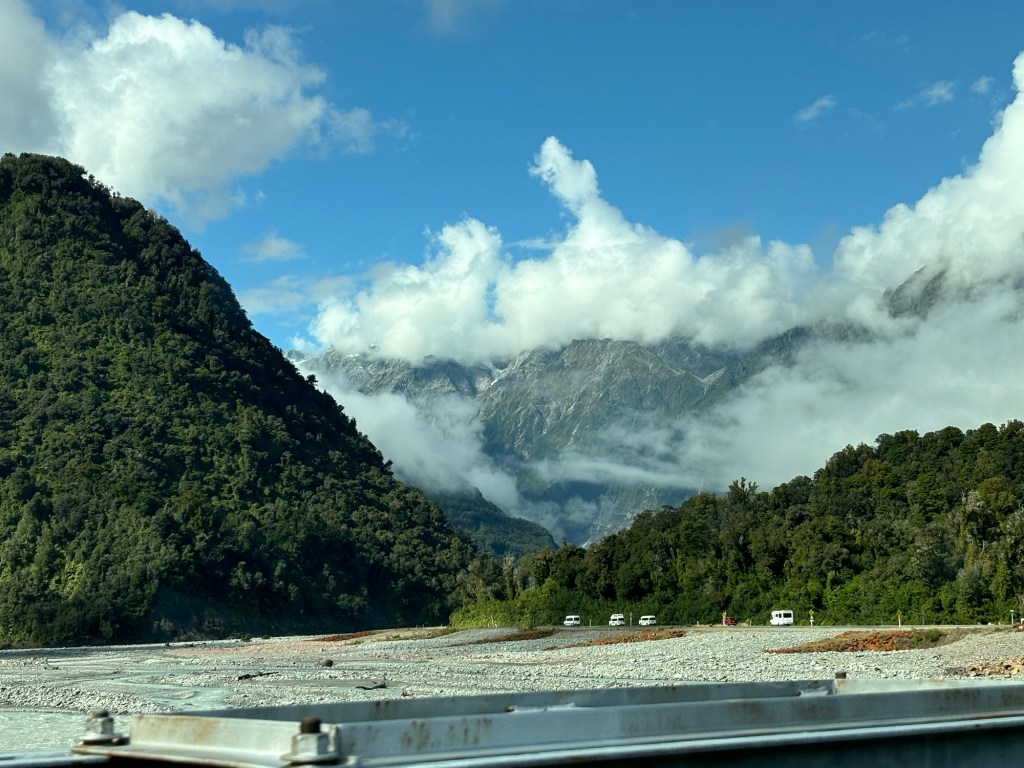 So… we started the day in Whataroa, and made our way to Franz Josef/Waiho. Where the Glaciers are… well… there are many, but this is where we visited one. We went to the helo services recommended by our AirBnb host, and booked for 12:30… we had an hour to kill, and it was subject to the pilots assessment… which was still TBD… so we headed to a walking trail, to get a land view.