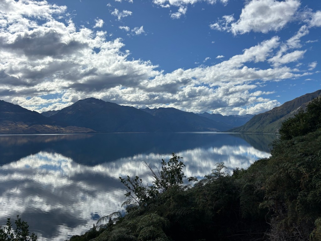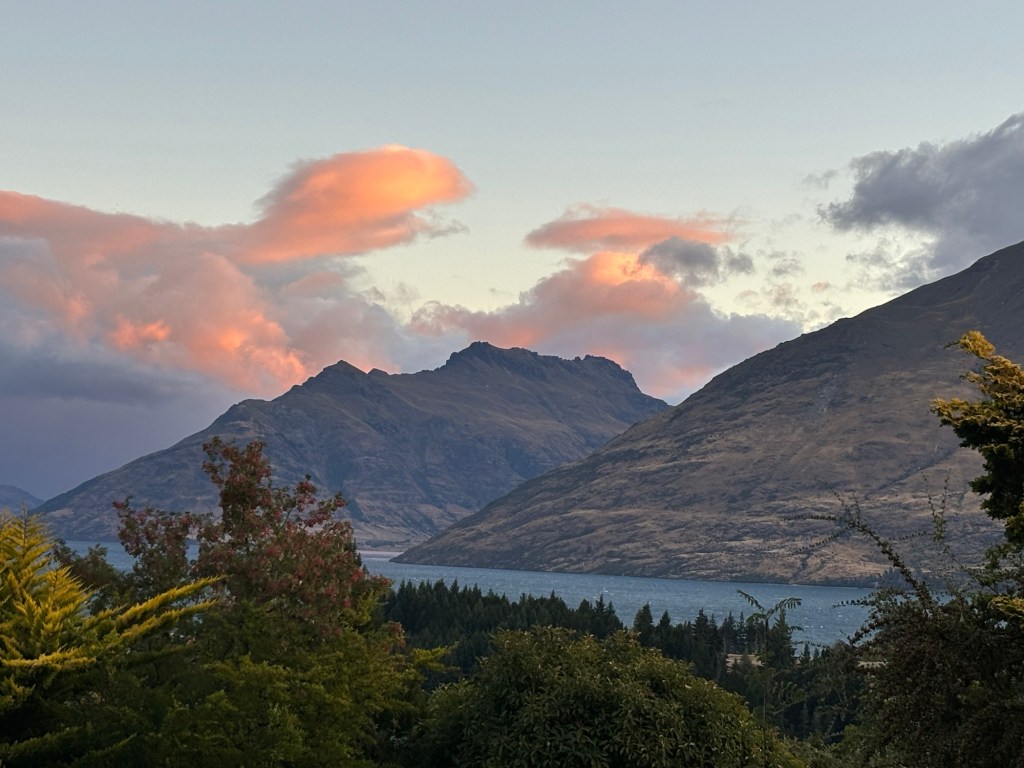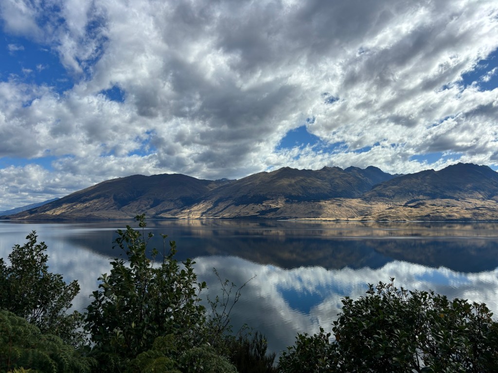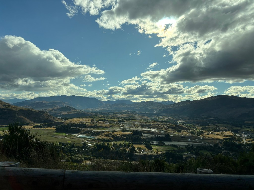 Along we traveled… thinking that we had seen the best of the best… but no, as we swung inland, towards Queenstown, we had to pass through the mountains, and past some stunning mountain lakes! (not too many of the mountains, I was driving, Rick was snoozing, recovering from the morning activities!)