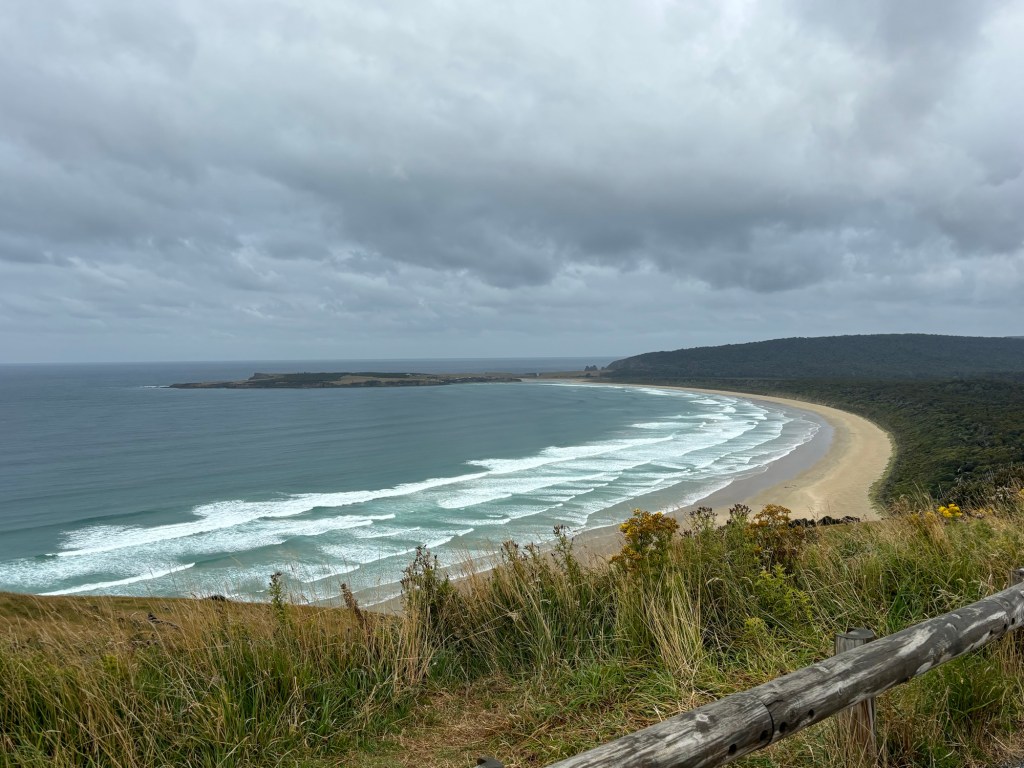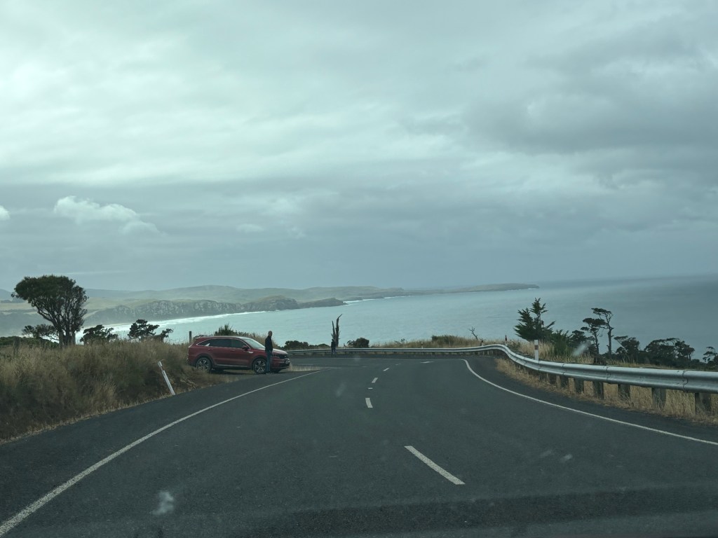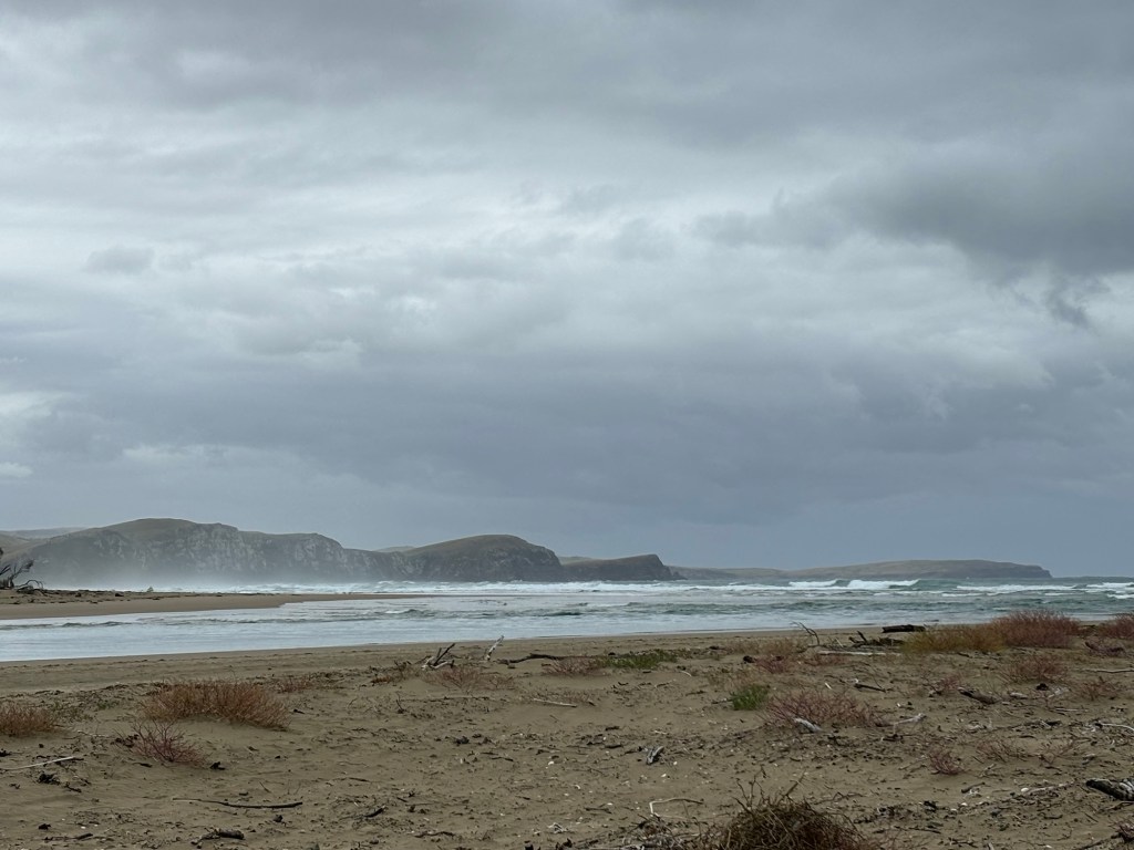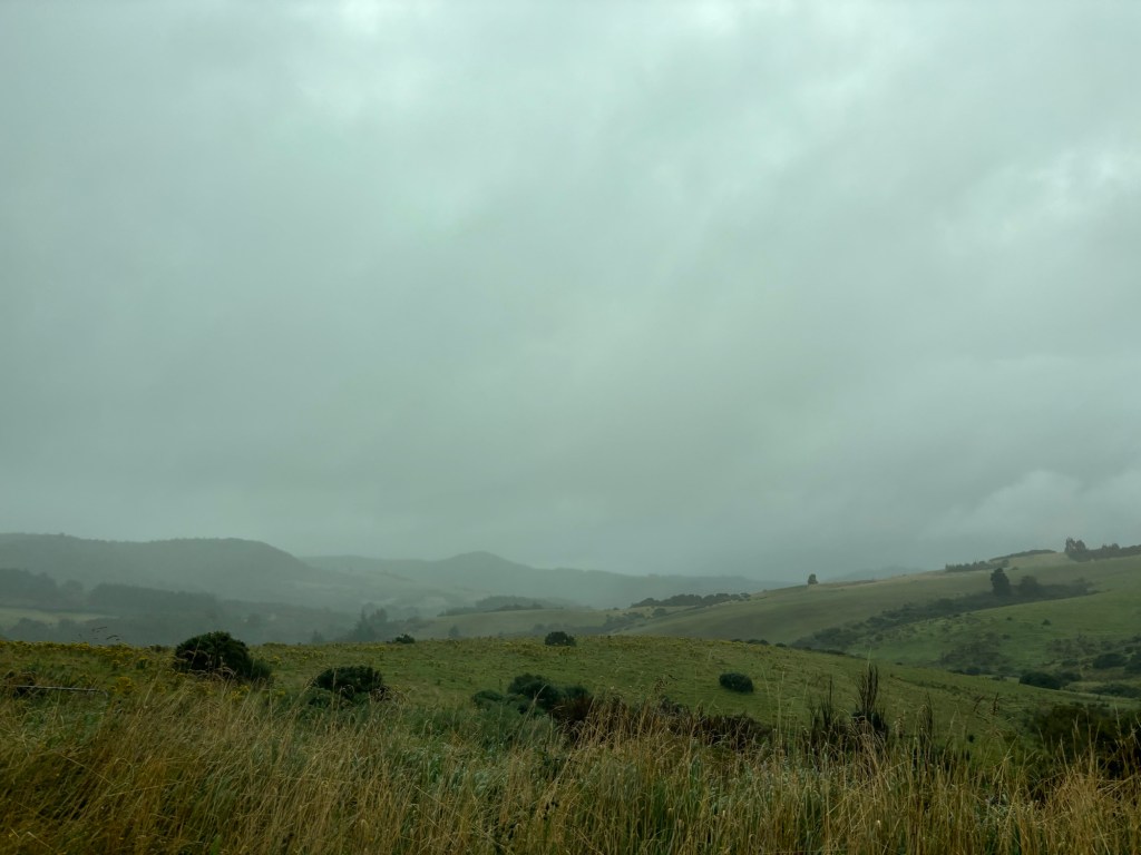 Well, today was rainy… and foggy. Which meant that our drive from Bluff up the east coast was not as stunning as it may have been otherwise. But we certainly got glimpses of what it might have been.