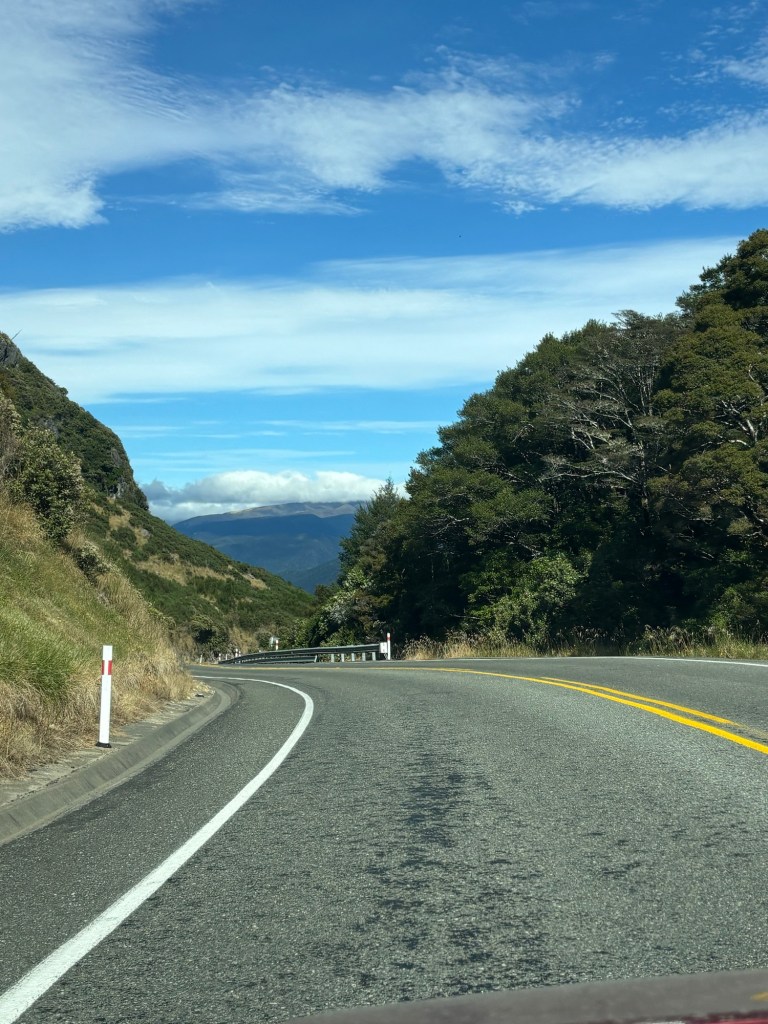 We had a choice: turn around and retrace our steps back to Reefton, and take the LONG WAY up the west coast. Adding probably 3 hours to our three hour drive. or travel a narrow gravel road, across the mountains.
