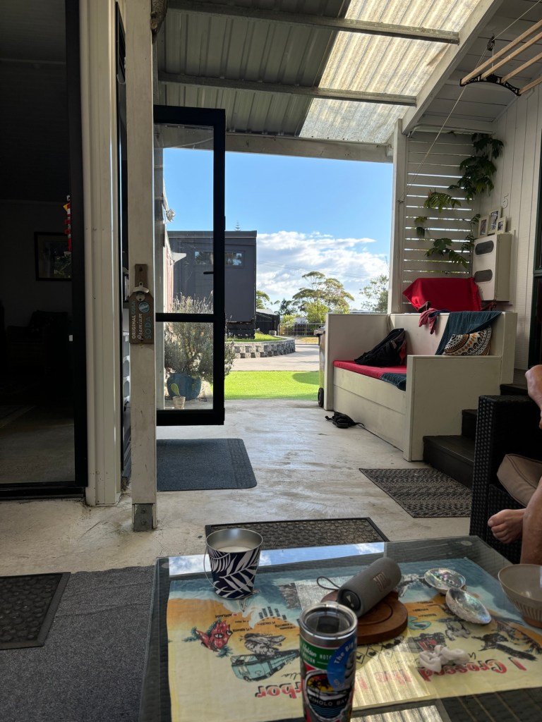 This morning; we headed to our northern stay, in the little community on the KariKari Peninsula, a trendy beach house. With gorgeous outdoor spaces, and more funky decor! I feel like I’m at Piggy’s Cove!