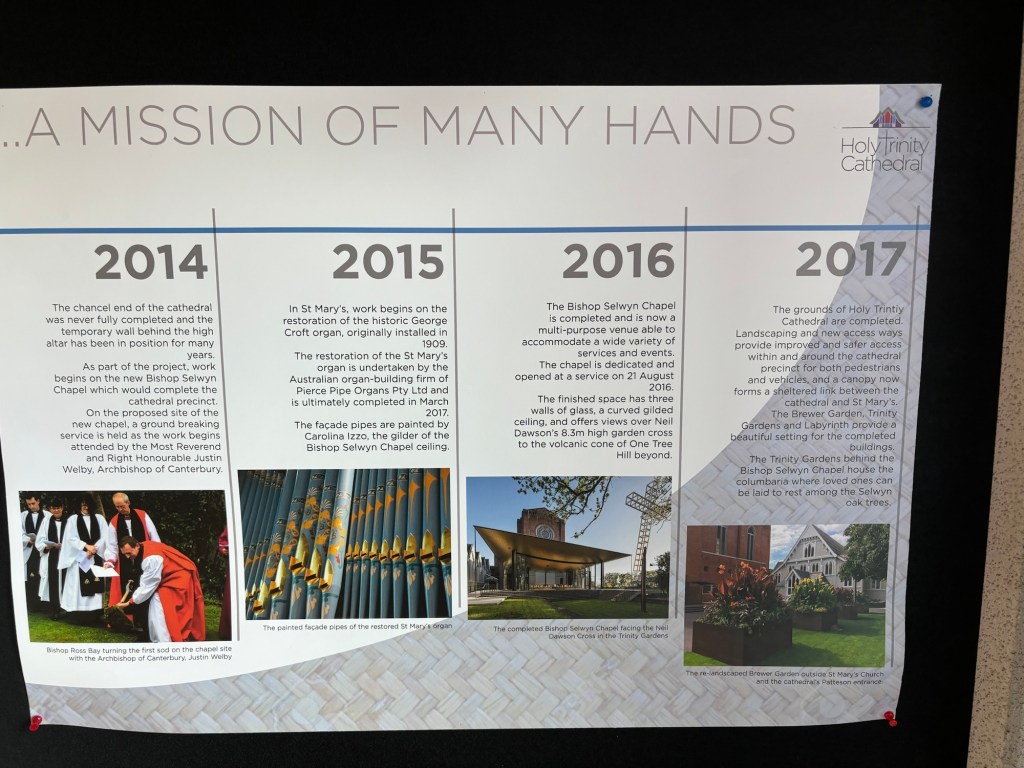 My favourite space was the last addition, the Selwyn Chapel. Named after the first Bishop of New Zealand, who had the vision to purchase the land back in 1843. His vision was not realized until 1950’s and not finished until 2017!